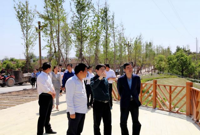 白水县雷牙镇党委书记郭武军向丁德科一行介绍尧头村田园式文化产业园规划