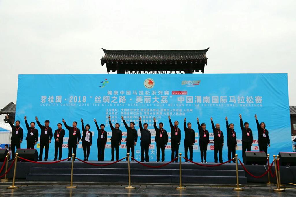 开幕式上,我校党委书记丁德科、院长卓宇作为特邀嘉宾,与陕西省体育局局长王勇,渭南市委副书记、市长李毅,中陕核工业集团公司党委书记、董事长张斌成,陕西省发改委副主任、十四运场馆部副部长王振海,副市长高洁,副市长、市公安局局长杨建琦,市政协副主席徐月凤,陕西省田径运动管理中心主任、陕西省田径协会主席张宏玲等各级领导、企业总裁、嘉宾以及裁判员、运动员,中省市主流媒体在同胜景广场参加了开幕仪式,冒雨鸣响发令枪,开启了“相约美丽大荔,畅跑快乐之旅”雨中马拉松赛的盛大赛程。中共大荔县委副书记、县长翟玉宝致辞。