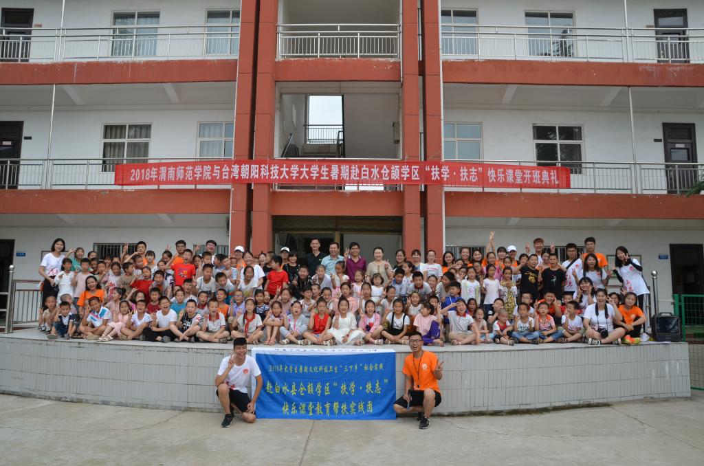 2017年,渭南师范学院大学生暑期三下乡的16名志愿者们提出:以青春的名义为白水县仓颉学区的孩子们开设“扶学·扶志”快乐课堂。在快乐课堂中,孩子们学习航模飞行技巧、演练英语口语对话、表演和声演唱、开始了足球训练等等,他们收获满满,幸福满满,更是期待满满。渭师的志愿者们还承诺:2018年给他们一个更为精彩的快乐课堂。于是他们经过多渠道联系沟通,成功邀请到了来自宝岛台湾的10名大学生一同开始了今年的“扶学·扶志”快乐课堂。