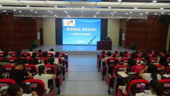 下午,中学语文高级教师、全国优秀语文教师徐步洋做了题为《墨香润课堂、阅读伴成长——阅读方法与途径探析》的报告,以何为阅读、阅读的益处、阅读现状为切入点,指出了我们现在的阅读危机——快餐式、跳跃性、随意性,为读书而读书,提出要学会主动阅读,变“阅读”为“悦读”、“教语文”不教“语文课本”,将课本当做参考资料,让语文教师成为读书种子。