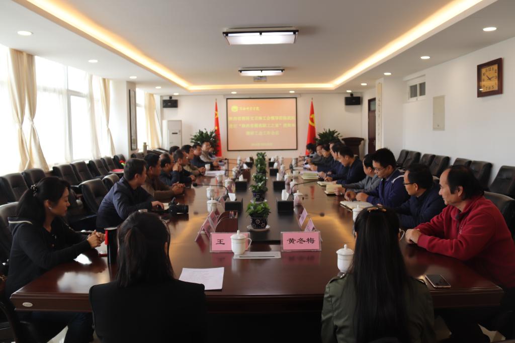 10月30日, 陕西省教科文卫体工会主席陈建树一行莅临我校进行“陕西省模范职工之家”授牌和工会工作调研活动。授牌仪式和调研座谈会在我院厚德楼四楼会议室举行。省教科文卫体工会主席陈建树,省教科文卫体工会副主席陈鹏,我校党委副书记、工会主席任健,院党政办公室副主任张勤恳,工会常务副主席王对启,副主席杨秀香和部分分会主席,教职工代表参加了授牌仪式和座谈会。授牌仪式和座谈会由院工会常务副主席王对启主持。