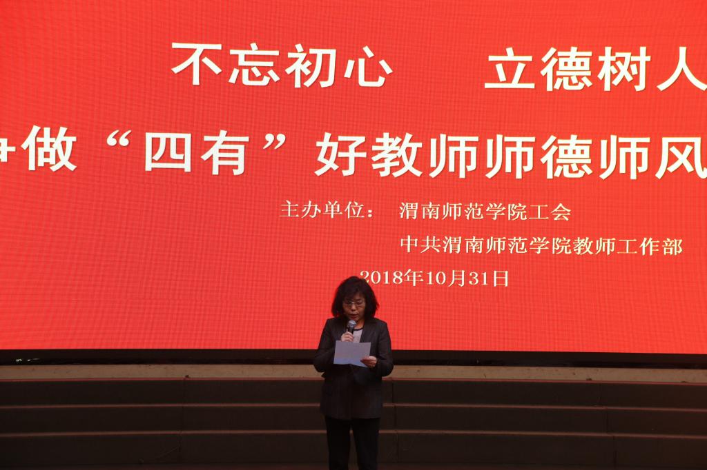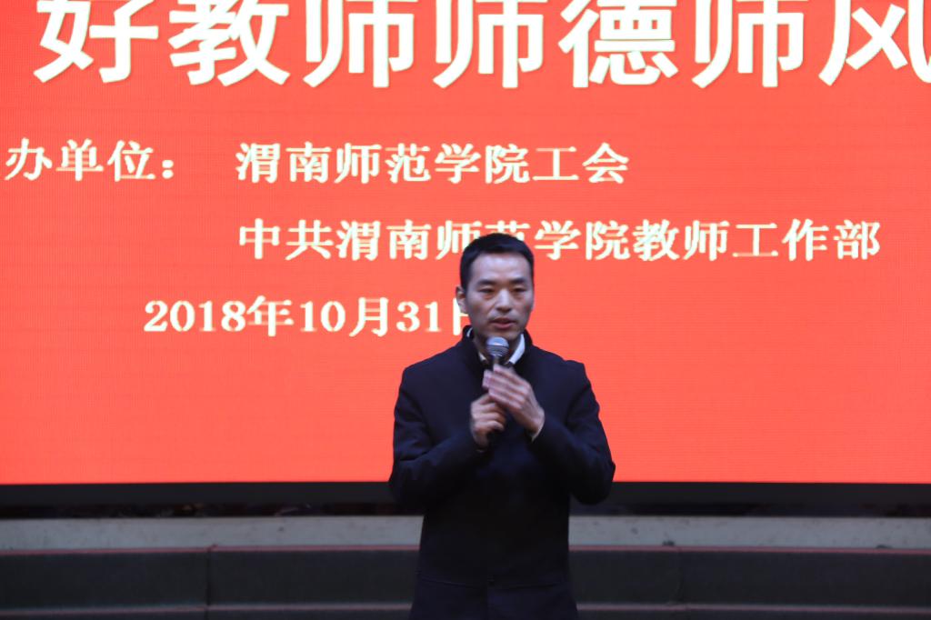 10月31日,我校在陶然楼演艺厅联合举办了“不忘初心,牢记使命,争做四有好教师”教职工师德师风演讲赛”。院党委副书记、工会主席任健、副院长王菊霞等三百多名师生观看了比赛,副院长王菊霞致辞。