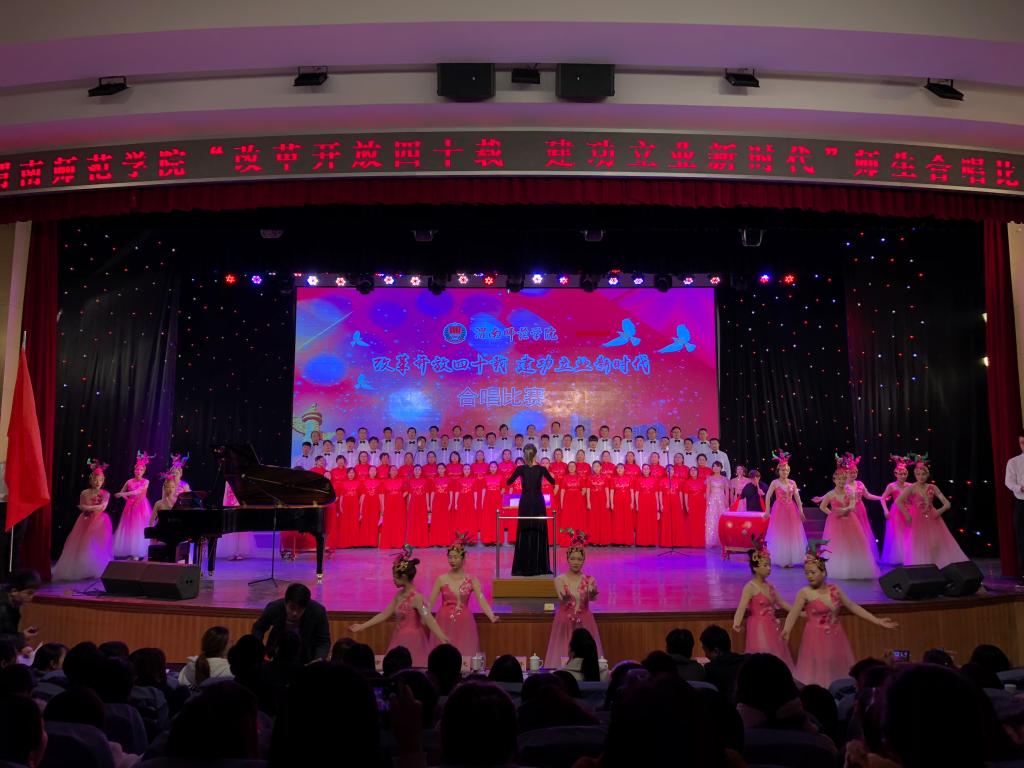 “五星红旗迎风飘扬,胜利歌声多么响亮;歌唱我们亲爱的祖国,从今走向繁荣富强。”“我们要把亲爱的祖国,变得更加美丽富强”。一首首整齐嘹亮的爱国歌曲,伴随着阵阵掌声回荡在校园。12月12日晚,我校“改革开放四十载 建功立业新时代”合唱比赛在学校陶然楼演艺厅盛大举行,校党委副书记、院长卓宇,党委副书记任健,纪委书记肖耀刚,副院长程书强、李海龙、权雅宁、王菊霞,院长助理韩小卫,组织部部长凌朝栋出席观看,并与800余名师生共同参加比赛。