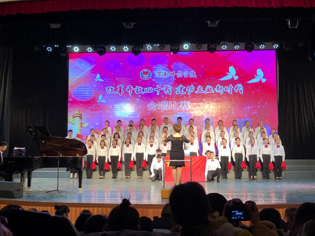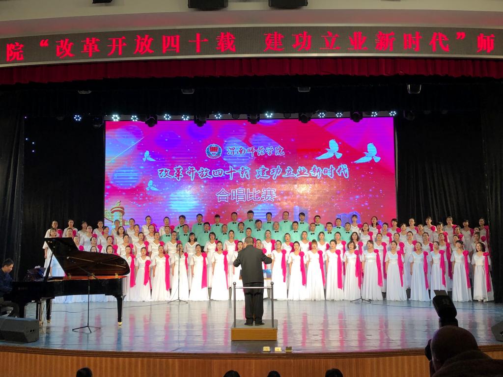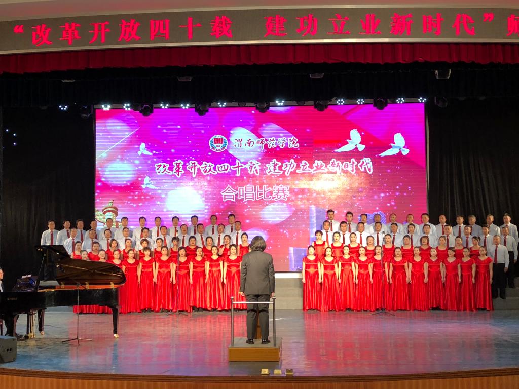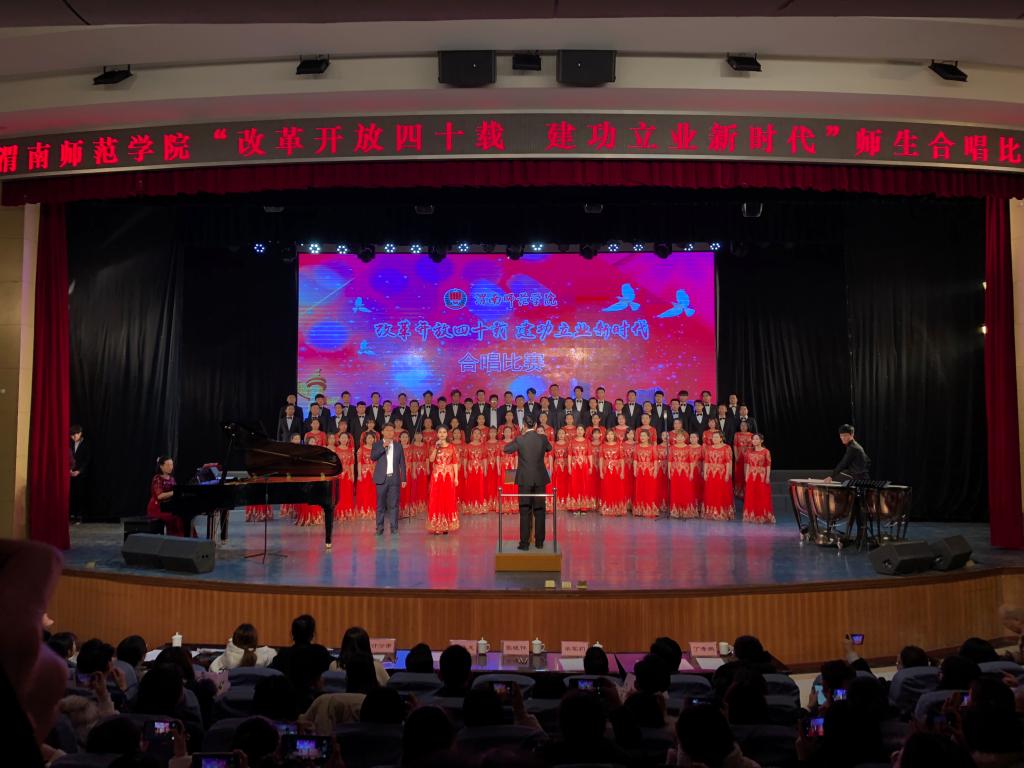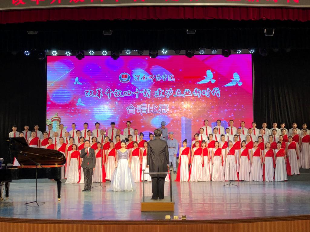 本次合唱比赛由中共渭南师范学院委员会主办,党委宣传部、校团委承办,比赛旨在深入贯彻落实党的十九大精神和习近平新时代中国特色社会主义思想,引领师生深刻认识改革开放40年来波澜壮阔的伟大历史进程,增强师生的责任感和使命感,营造积极健康、特色鲜明的校园文化氛围。(通讯员 晋彤 谢丽娜)