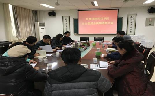 12月13日下午,民盟渭南师范学院总支委员会在化学与材料学院A101会议室召开换届选举大会。渭南市政协副主席、民盟渭南市委主委杨文斌、民盟渭南市委秘书长陈晓燕、渭南师范学院党委委员、副院长、统战部部长王菊霞、陕西省政协委员、民盟渭师总支主委王双喜以及二十余名民盟代表出席了会议。王双喜同志主持本次会议。