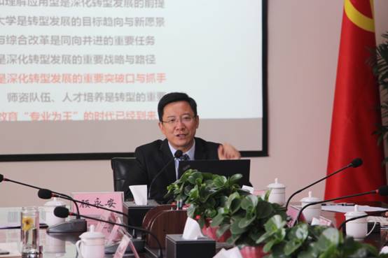 顾永安教授从中国应用型高等教育的新生态、地方本科院校转型发展的新理念、中国新型大学建设的新形态、高等教育新形势对教师发展的新要求等四个方面进行了全面解析。他结合我校实际,以创新的视角,详实的论据,指出转型发展不仅仅是形式上的转型,更是内涵上的转型,关键在于思想理念上的转型。他建议我校要以教育部本科教学审核评估整改后的持续改进为契机,积极转变发展理念,强化问题意识,抓住转型发展中内部治理、师资队伍建设、人才培养等关键问题进行综合改革,坚持改革、善于创新、科学谋划、群策群力,在转型中发展,在发展中转型。