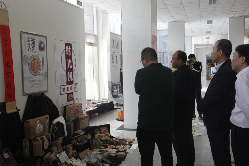在参观作品中,殷晓克向赵曼校长汇报了毕业设计作品的要求,每个系列作品在创作过程中应用了不同的材质,材质的不同,学生的想法和设计理念不同,主题思想就不同。