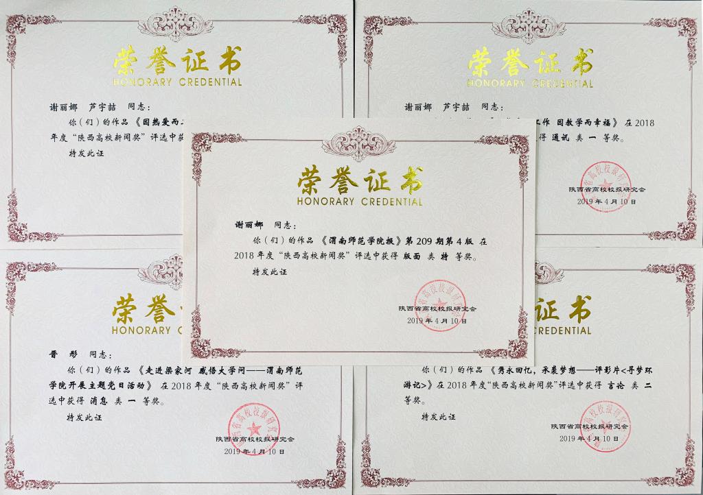 近日,2018年度陕西高校新闻奖评选结果揭晓,《渭南师院报》5件作品榜上有名,其中特等奖1项、一等奖3项、二等奖1项。