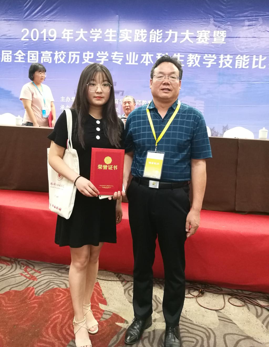 7月24日,2019年大学生实践能力大赛暨第七届全国高校历史学专业本科生教学技能比赛在江苏徐州落下帷幕。我校人文学院历史学161班陈婷同学荣获全国教学技能比赛二等奖,成荣强老师荣获全国优秀指导教师奖。