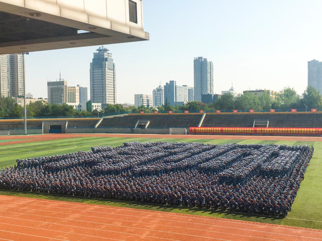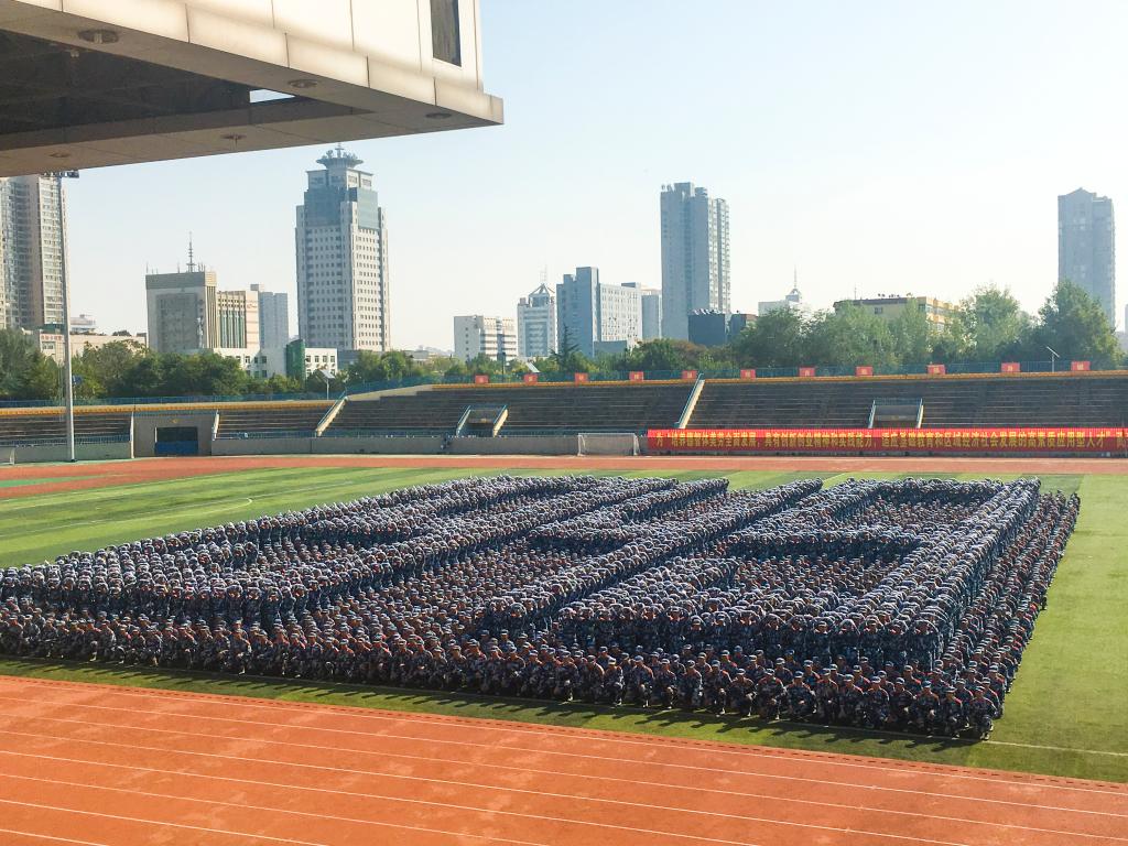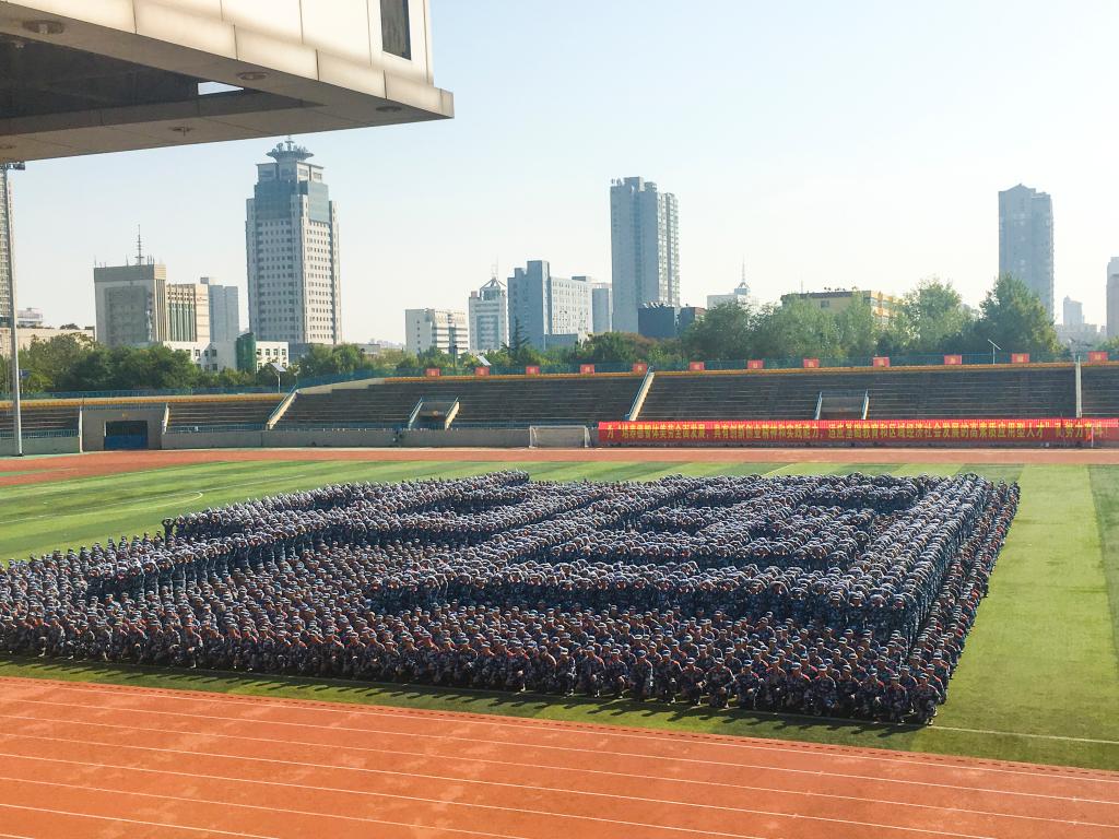 在军训团副团长荆立哲的统一指挥下,受训新生们分别进行了格斗术和“活字”方阵表演。首先,紧锣密鼓中,四千余名学子们迅速由方阵变换为格斗术阵型,在教官的统一指令下,学子们动作标准,喊声震天,气势磅礴,一气呵成。精彩的表演赢来了主席台和观众的阵阵掌声。随后,方阵变换为正方形,学子们摆出“渭师”“1949”“2019”“70”“中国”等造型并高呼“渭南师院、不忘初心、牢记使命、教书育人、报效祖国”。最后,四千余名参训新生共同高歌《我爱你,中国》,将汇报表演推向高潮。表演展现出蓬勃昂扬的精神面貌和英勇顽强的战斗作风,赢得了参会领导和师生的阵阵热烈掌声,展示了15天的军事训练成果。