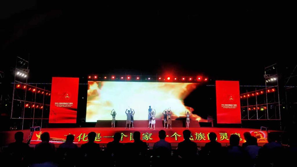 70年风雨兼程,70载壮丽辉煌。在新中国成立70周年之际,白水县庆祝中华人民共和国成立70周年文艺晚会“壮丽70年奋斗新时代”9月29日在白水县雷牙镇尧头村“福”文化广场举行。渭南师范学院音乐学院师生60余人赴白水县参加庆祝新中国成立70周年文艺晚会并成功演出。我校师生与白水县人民共同回顾新中国“”风雨历程”“”激情岁月”“”新时代乐章”三个篇章的历史成就,共同歌颂祝福祖国繁荣昌盛。