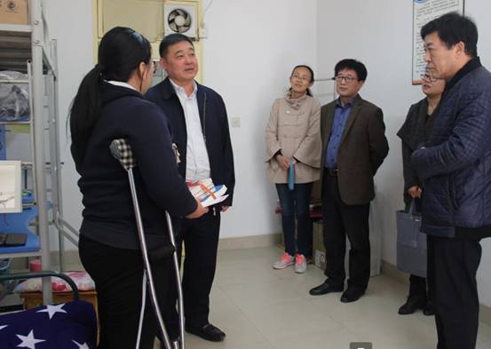 在计算机学院为刘晓荣特别安排的宿舍中,卓宇亲切询问刘晓荣的身体和学习情况,面对刘晓荣不幸的遭遇,卓宇和在场师生同情不已。“要全力以赴帮助像刘晓荣一样的学生度过困难,帮助他们顺顺利利圆满完成学业”,卓宇对在场有关部门领导说道。接过卓书记的礼物,不善言谈的刘晓荣注视着卓书记,眼神里透露着感恩和坚定。