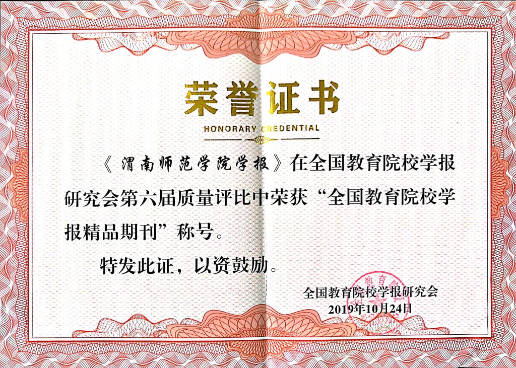 日前,从全国教育院校学报研究会2019年学术年会获悉,《渭南师范学院学报》荣获“全国教育院校学报精品期刊”,教育部名栏“司马迁与《史记》研究”荣获“全国教育院校学报特色栏目”。此外,詹歆睿、牛怀岗同志分别荣获全国教育院校学报研究会“妙笔奖”。