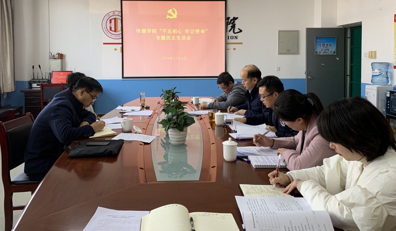 会前,传媒学院党总支按照专题民主生活会相关要求进行了充分的准备。结合工作实际研究制订了《传媒学院党总支“不忘初心、牢记使命”专题民主生活会实施方案》,组织班子成员深入学习习近平新时代中国特色社会主义思想以及党的十九届四中全会、习近平总书记在“不忘初心、牢记使命”主题教育工作及其他重要会议、视察考察时的重要讲话和指示批示精神,充分打牢专题民主生活会召开的思想基础。通过召开班子集中座谈会、班子成员之间及与党员师生谈心谈话等形式,结合主题教育问题整改进展进一步征集意见,班子集体认真梳理存在问题,严格按照“四个对照”“四个找一找”的要求,撰写领导班子对照检查材料和个人发言提纲,全面盘点收获、检视存在问题、深刻剖析原因。