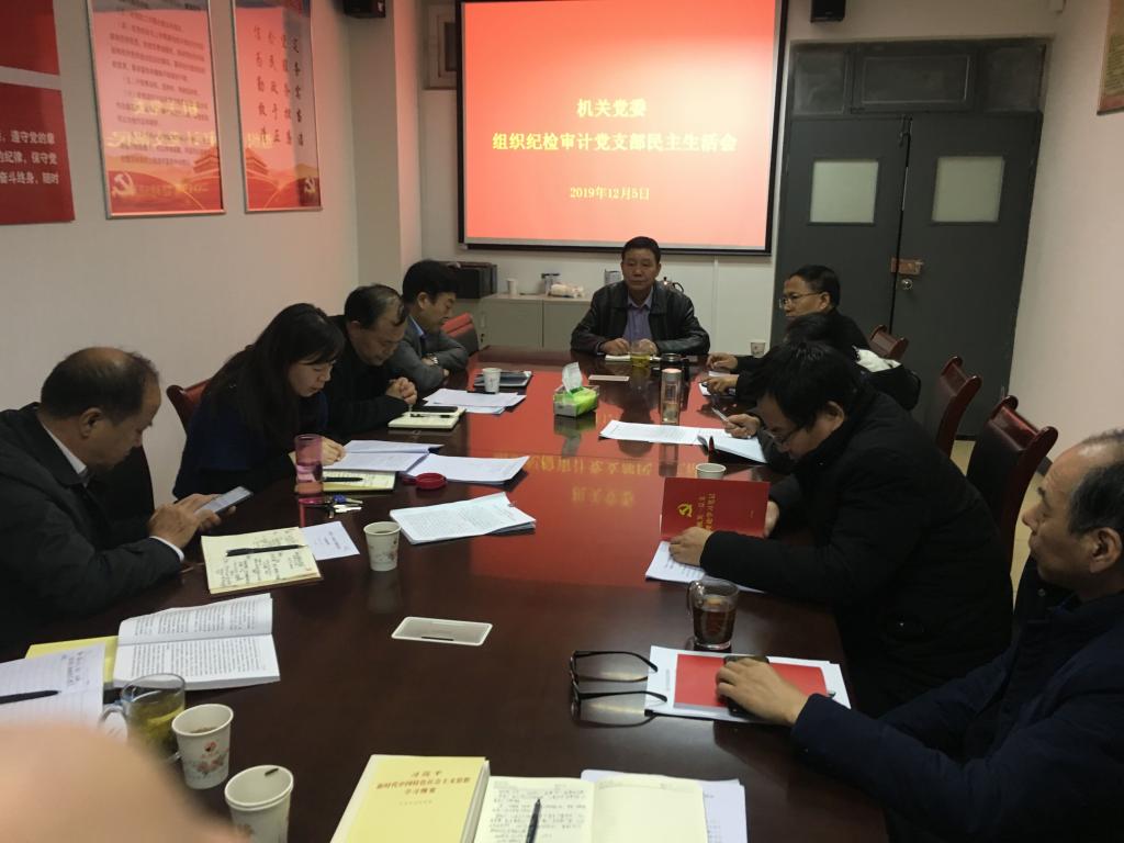12月5日下午,组织纪检审计党支部在厚德楼3802党员活动室召开“不忘初心、牢记使命”主题教育专题民主生活会,纪委书记肖耀刚参加并指导。支部副处级以上党员干部参加,会议由支部书记凌朝栋主持。原机关一总支书记陈景西列席会议。