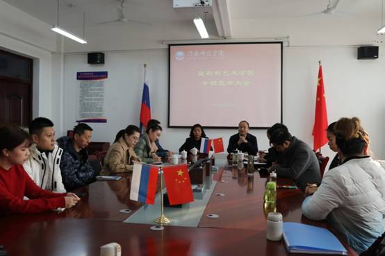 12月6日上午,莫斯科艺术学院召开干部任命会。校长赵曼,副校长王菊霞,组织部部长凌朝栋,人事处副处长景根杰,莫斯科艺术学院领导班子成员及无课教师参加会议。