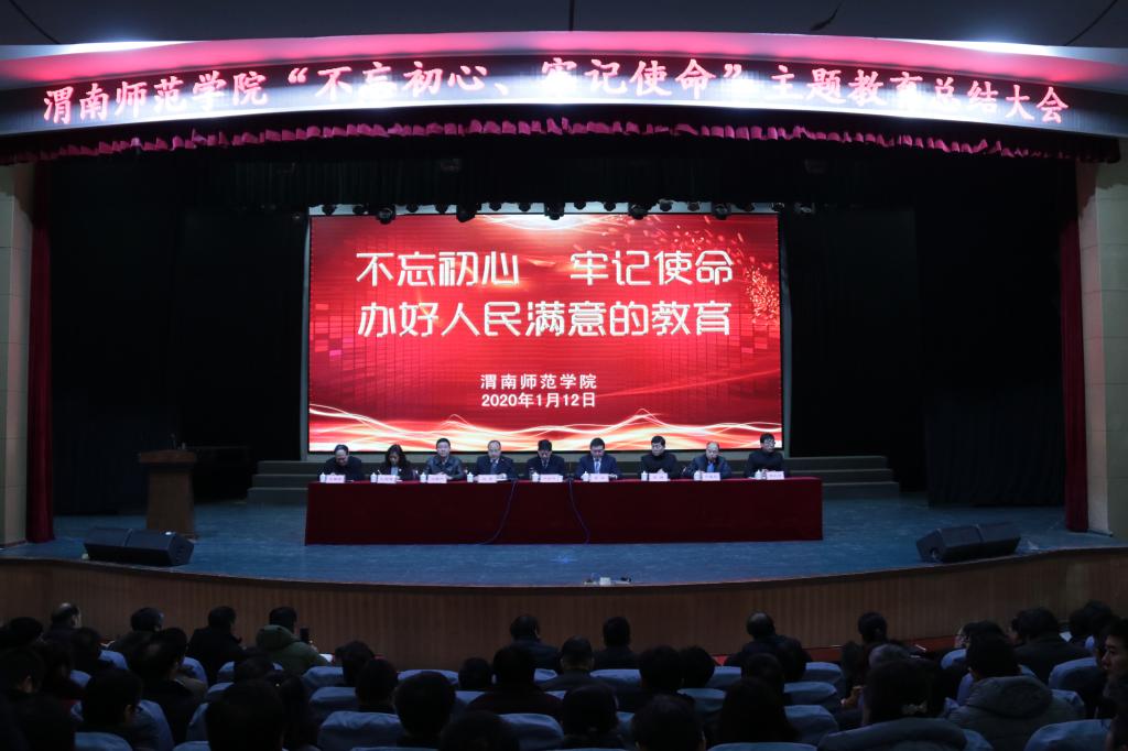 1月12日上午,渭南师范学院“不忘初心、牢记使命”主题教育总结大会在学校陶然楼演艺厅召开,校党委书记卓宇作主题教育总结报告,省委主题教育第三巡回指导组副组长缪金华出席会议并讲话,党委副书记、校长赵曼主持会议。