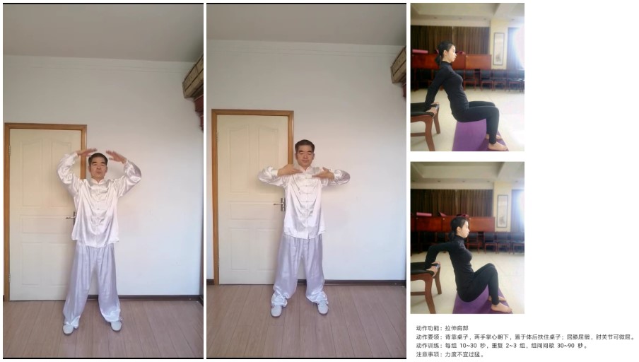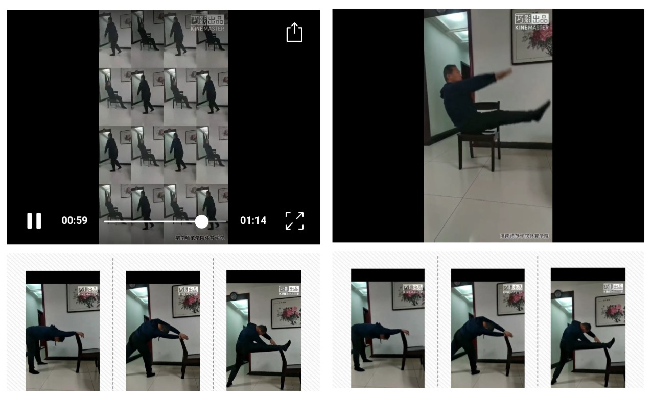 史红梅、王毅、王军、黄璐等党员教师纷纷积极响应,录制居家运动指导系列视频,撰写家庭健身指导方案,助力大众科学开展家庭健身运动。教师们结合大众居家条件和设施等实际情况,分别借助凳子、窗台等家庭通用条件,进行凳子健身操、窗台健身操运动指导,就肩颈瑜伽锻炼、肘膝关节锻炼进行指导,并先后拍摄了拍打操示范、健美操慢动作教学示范、八段锦分解动作示范、家用健身球锻炼、肢体拉伸锻炼、体能锻炼等适合于家中进行的运动示范视频。目前已累计制作家庭健身示范指导视频90余个,并且还在持续更新中。视频内容简便易学,运动指导分类细化,锻炼项目实效性强,符合广大群众家庭锻炼实际需求。