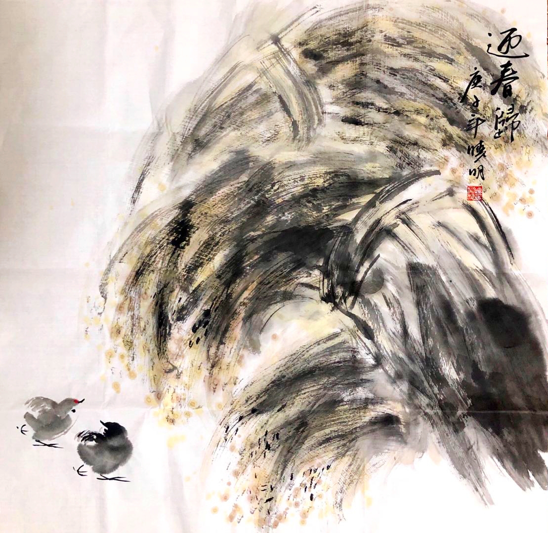 图1-《逐疫迎春归》四尺斗方纸本花鸟段晓明