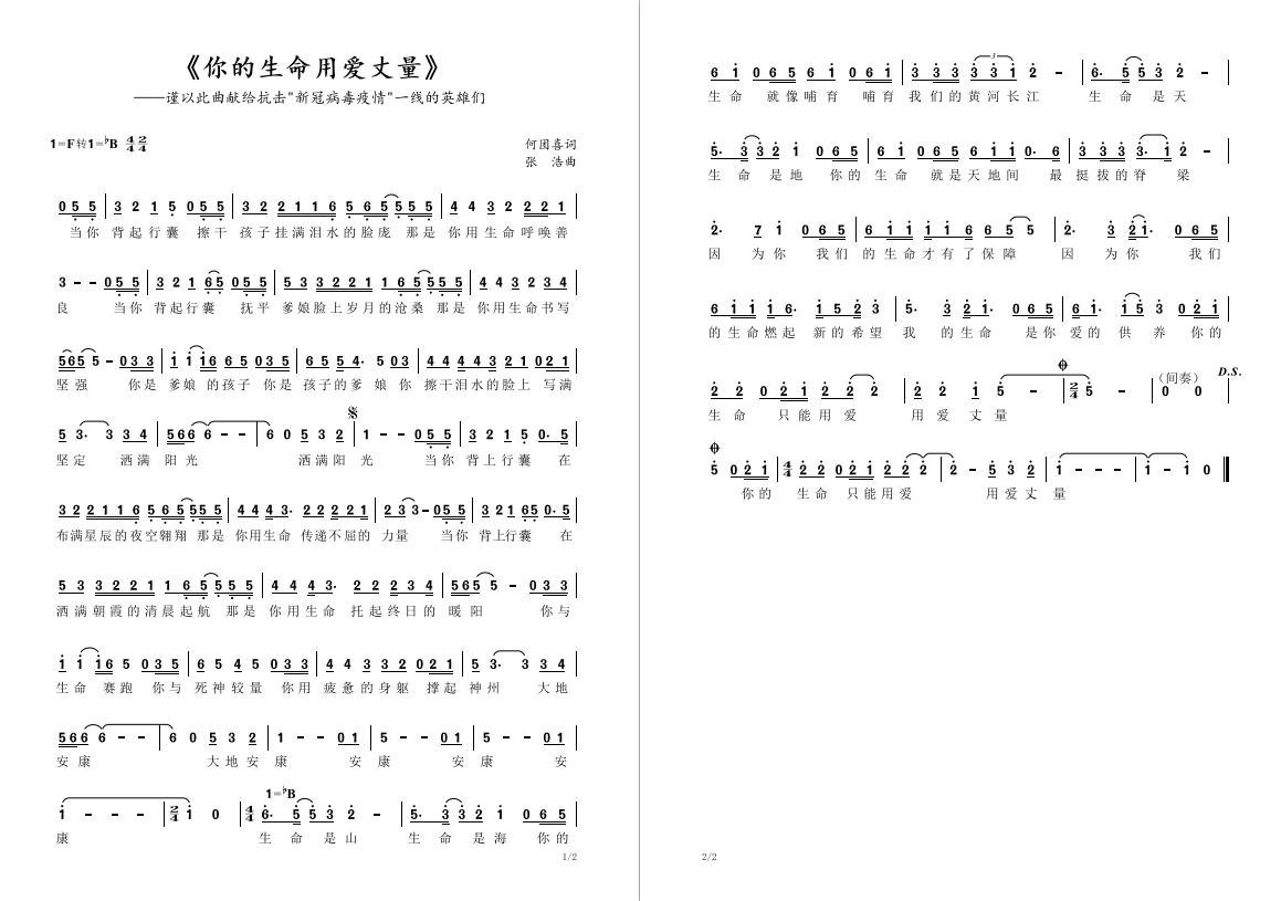 《你的生命用爱丈量》由何团喜作词、张浩作曲,渭南师范学院莫斯科艺术学院青年教师党员徐敏、刘鑫、张浩,青年教师李小凡和渭南职业技术学院杨文华、渭南高级中学李姗姗、渭南高新区第一小学李欣等7人联袂演唱。混音由林泽、吴金澎配制,朱逊、常远、马继君进行视频制作。歌曲创作得到学校和学院的高度关心支持,制作过程中,广大师生、渭南市文联、渭南市合唱协会通过网络提供了大力支持和帮助。《你的生命用爱丈量》发布后受到社会各界的热情赞誉。(通讯员 高梦涵 张浩)
