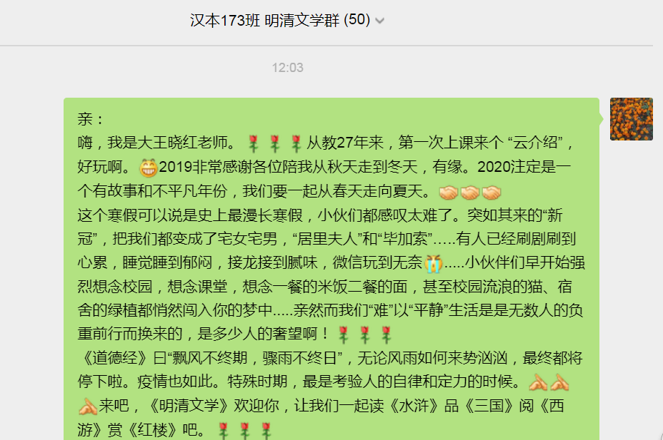 王晓红教授用亲切幽默的导入开始了新学期第一课,充满关怀挂念和鼓励,润物无声。