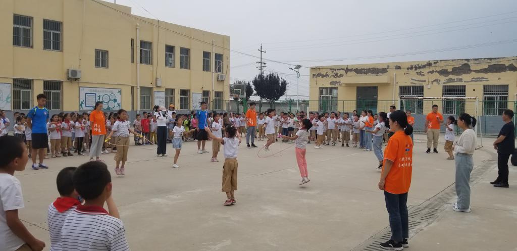 在仓颉第一小学,任健看望慰问我校“扶学 扶志”快乐课堂支教队师生,在仓颉一小操场任健观摩了由支教团组织的年级跳绳比赛,对队员们的精心组织表示肯定,希望大家发扬“扶学 扶志”快乐课堂的传统,发挥青年大学生活力,开展好结对帮扶的实践活动。他向带队老师美术学院团总支书记任晓婷了解支教队员专业结构、课程安排,特别强调做好实践队日常防疫工作。