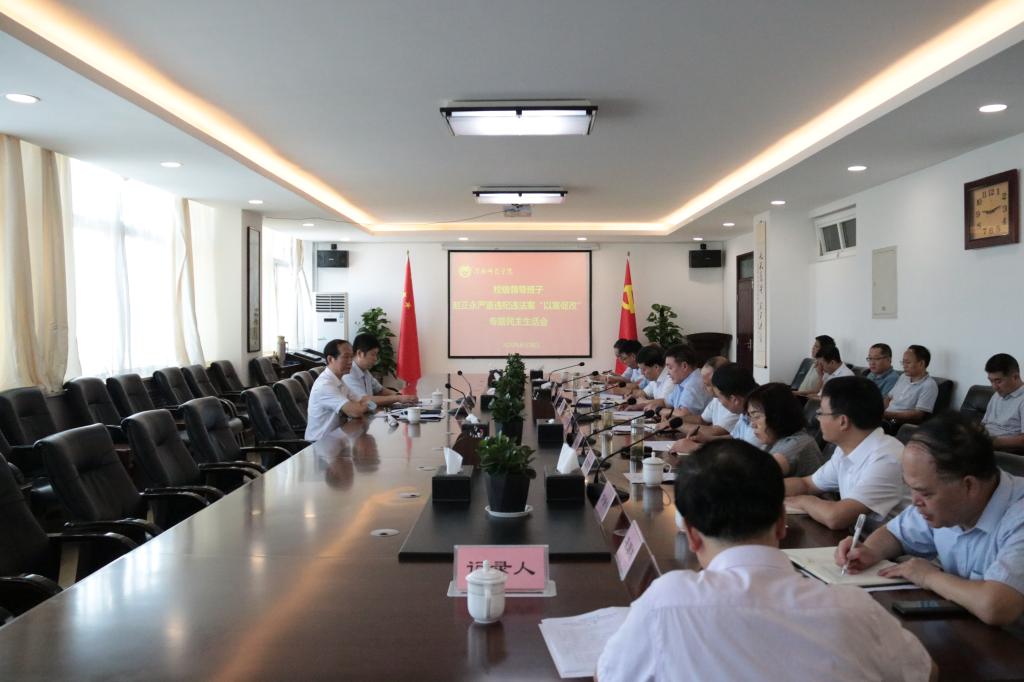 8月28日上午,我校校级领导班子在朝阳校区厚德楼四层第二会议室召开赵正永严重违纪违法案以案促改专题民主生活会。省高校以案促改专题民主生活会督导组组长、省委教育工委、省教育厅一级巡视员朱征南,督导组成员、省教育厅高教处副处长杨鹏到会指导。校领导班子全体成员参加会议。会议由学校党委书记卓宇主持。