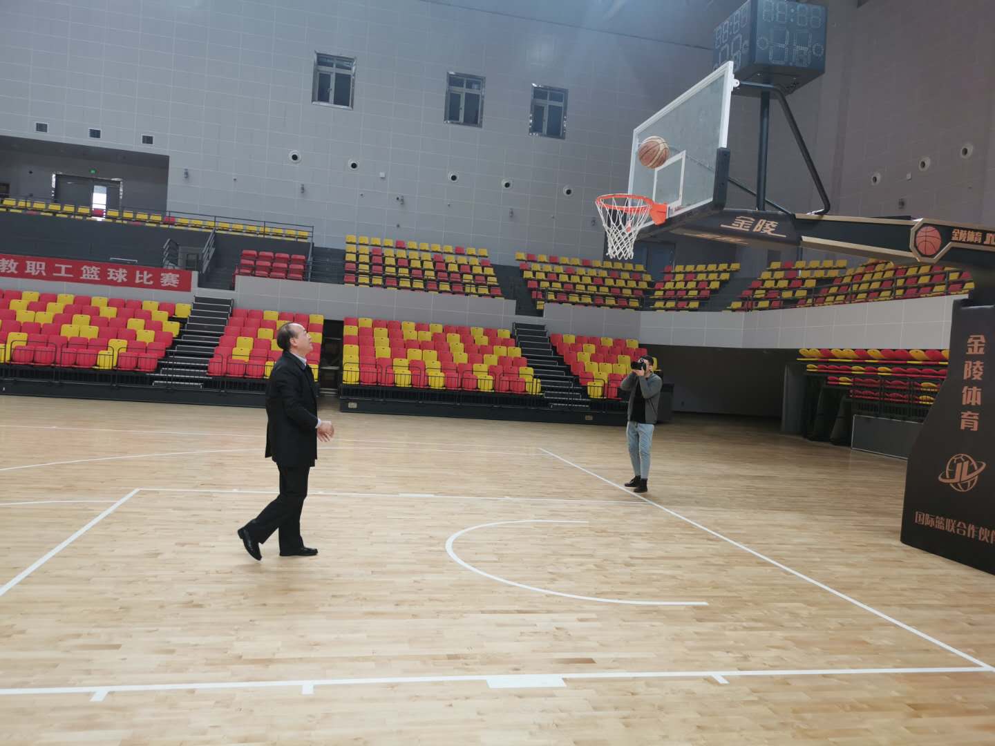 王山稳一行先后实地查看了主竞赛馆、热身场馆以及场馆功能用房、核心机房运行情况并听取了场馆建设工作汇报,对我校党政领导高度重视十四运场馆建设工作,积极采取有力措施,扎实推进十四运女子篮球比赛场馆建设工作给予了充分肯定。他还在现场亲自投篮体验。
