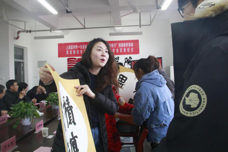 简晓鹏向师生们介绍了上海富邦华一公益基金会设立的宗旨以及来我校开展捐资助学活动的目的。他说,今年在我校捐赠5万元资助富平校区20名家庭经济困难学生,希望受助学生能将滴水之恩转化为自强不息的学习动力,奋发图强,成为对社会和国家有担当的人才。
