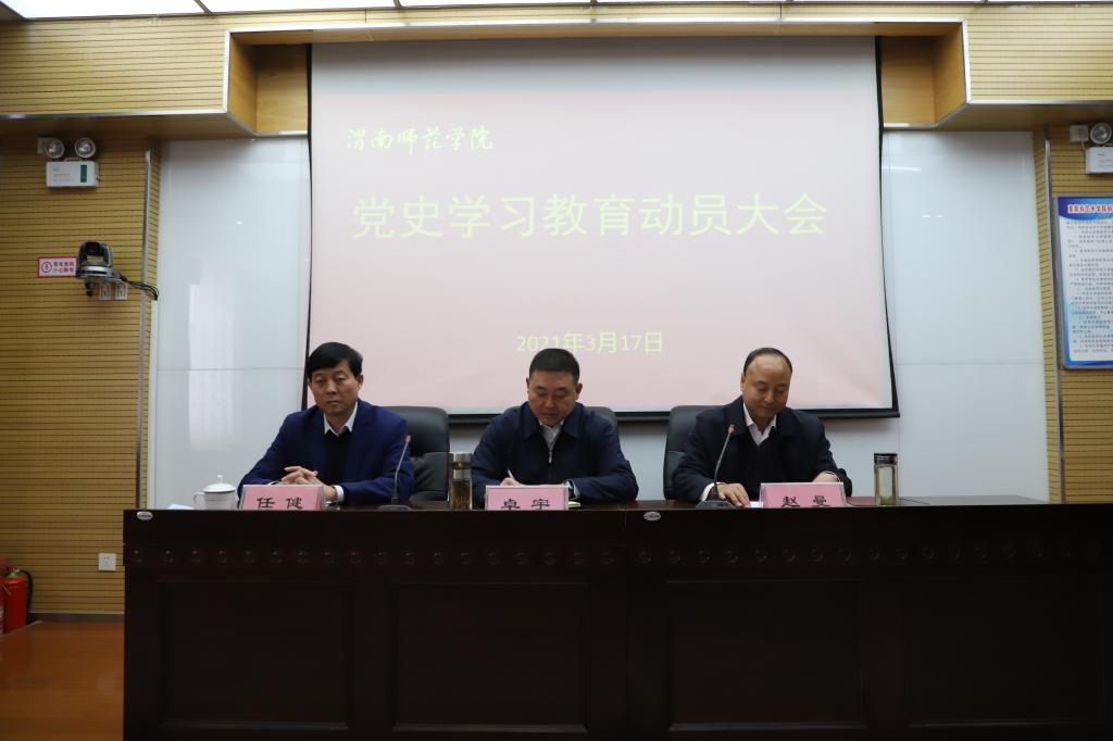 3月17日上午,学校召开党史学习教育动员大会。党委副书记、校长赵曼主持会议。