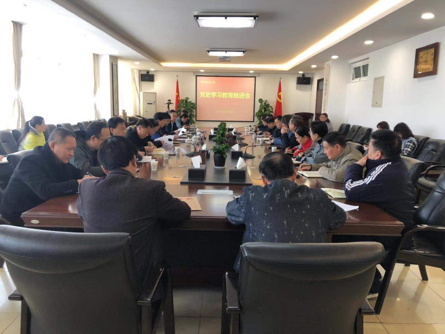 推进会上,任健作了部署讲话。他讲到,党史学习教育领导小组办公室要组织好学习教育。学是基础,学是关键,在“既要明确内容,又要明确要求”的原则下,按照上级相关文件精神将党史学习教育落实、落细、落地,把握好工作进度,确保取得良好效果;充分利用各类宣传平台,通过多种渠道,将党史学习教育中的特色亮点进行凝练、展示,挖掘、树立、宣传党史学习教育中的先进人物和事迹,积极营造浓厚的宣传学习氛围;党员干部在党史学习教育中要率先学,以上率下,确保党员学习教育全覆盖;在党史学习教育中既要学习指定教材,也要学习习近平总书记关于教育的重要论述和党史学习教育的重要讲话精神;通过党史学习教育要达到明理增信、崇德力行,不断提升党员干部政治判断力、政治领悟力、政治执行力。