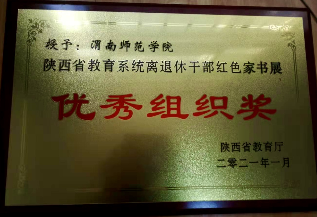 4月27日,陕西省教育系统老干部工作会议在省教育厅召开,我校离退休工作处获全省教育系统离退休干部“红色家书”展主题活动优秀组织奖。