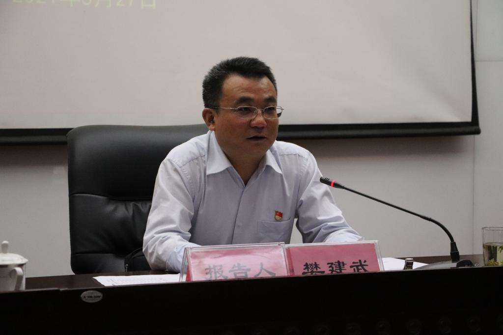 5月27日上午,省委教育工委、省教育厅党史学习教育宣讲团成员,西安科技大学党委副书记樊建武教授应邀来我校作党史学习教育专题宣讲报告,我校党委委员、副校长常青林主持报告会。