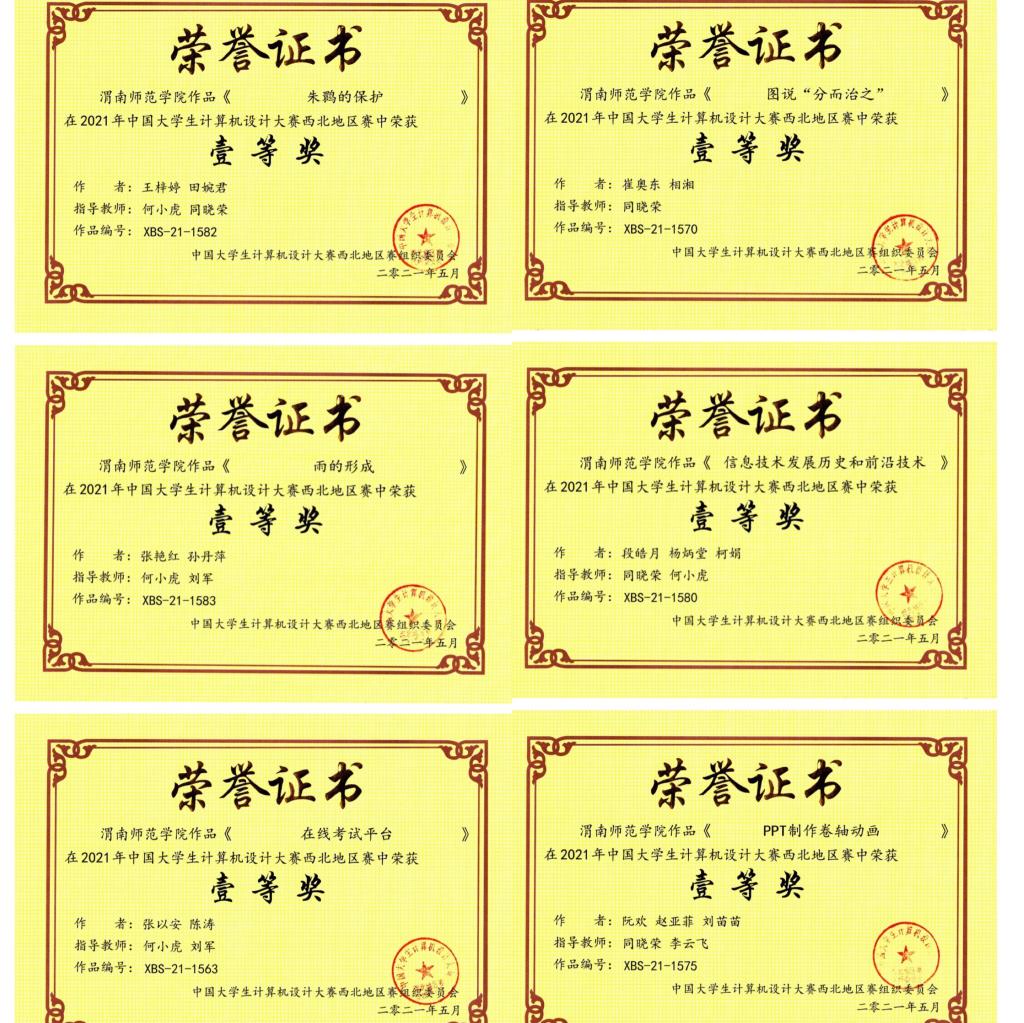 日前,第十四届中国大学生计算机设计大赛西北赛区决赛在西安文理学院举行。来自西北工业大学、西安电子科技大学、西北大学、陕西师范大学、兰州大学、宁夏大学、青海大学、空军工程大学和武警工程大学等西北地区60多所高校1800余件作品参赛件作品参加了本次大赛。经过省级初赛、省级决赛我校计算机学院参赛的作品获得一等奖6项,二等奖14项、三等奖6项的历史最好成绩,其中6件作品被推荐参加全国总决赛。中国大学生计算机设计大赛列入2015-2020年高校竞赛排行榜。