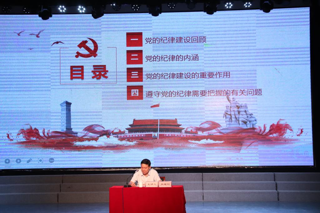 7月7日下午,学校召开纪律教育大会,党委副书记、纪委书记、陕西省监察委员会驻我校监察专员肖耀刚为学校副科级以上干部讲授了题为《加强纪律教育 促使纪律意识养成》党史学习教育专题党课。学校党委委员参加了党课。专题党课由纪委副书记李望主持。