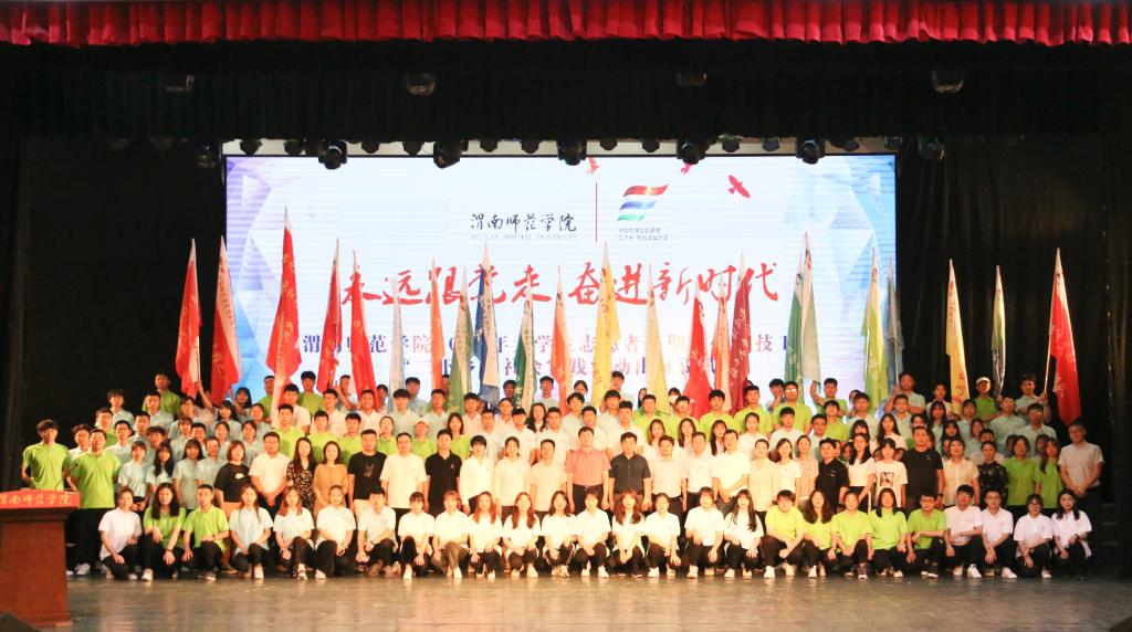 仪式上,团委书记姚明亮宣读《渭南师范学院2021年暑期文化科技卫生“三下乡”社会实践活动的通知》文件;学生工作部(处)部长陈景西宣读《渭南师范学院2021年暑期文化科技卫生“三下乡”社会实践活动立项通知》。环境与生命科学学院副院长、副教授吕海波博士代表社会实践带队教师发言,他希望,同学们要将暑期社会实践作为磨砺自身的试金石,在实践中完成健康个性塑造、体会劳动价值、构建职业生涯,在实践中展现我校大学生的良好精神风貌与技能水平。莫斯科艺术学院美术学H181班席瑞瑶同学代表暑期社会实践队志愿者发言,她表示,要在暑期社会实践中把握时机、积极锻炼,把“三下乡”实践活动在老师的指导与同学的协作下完成好,为自己的大学生活增添光彩,用实际行动践行永远跟党走、奋进新时代的时代主题。随后,参会领导为“三下乡”社会实践队伍授旗,激励同学们在广大基层实践中积极建功立业、实现青春理想。