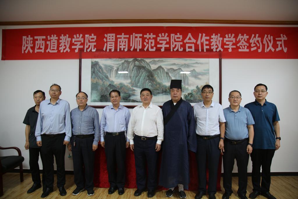 9月2日,我校党委书记卓宇、副书记韩小卫等一行五人,赴陕西道教学院商谈合作教学事宜,并举行合作教学协议签约仪式。渭南市委统战部副部长、宗教局局长魏书萌,陕西道教学院常务副院长邹通玄、副院长高新华出席签约仪式。