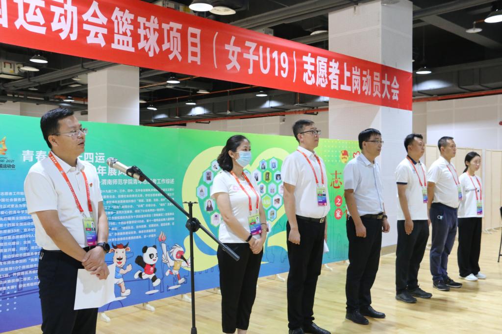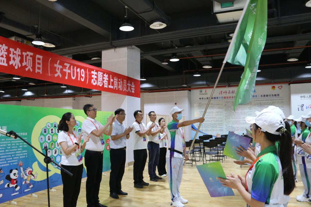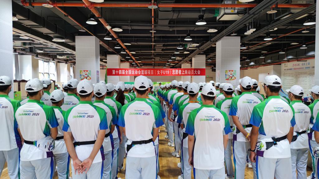 十四运会篮球项目(渭南赛区)志愿者工作处副处长张力、肖飞,志愿者主管王斌、朱玉娜、郭艺歌和181名篮球项目志愿者参加了动员大会。(通讯员 王若萌 审核人 姚明亮)