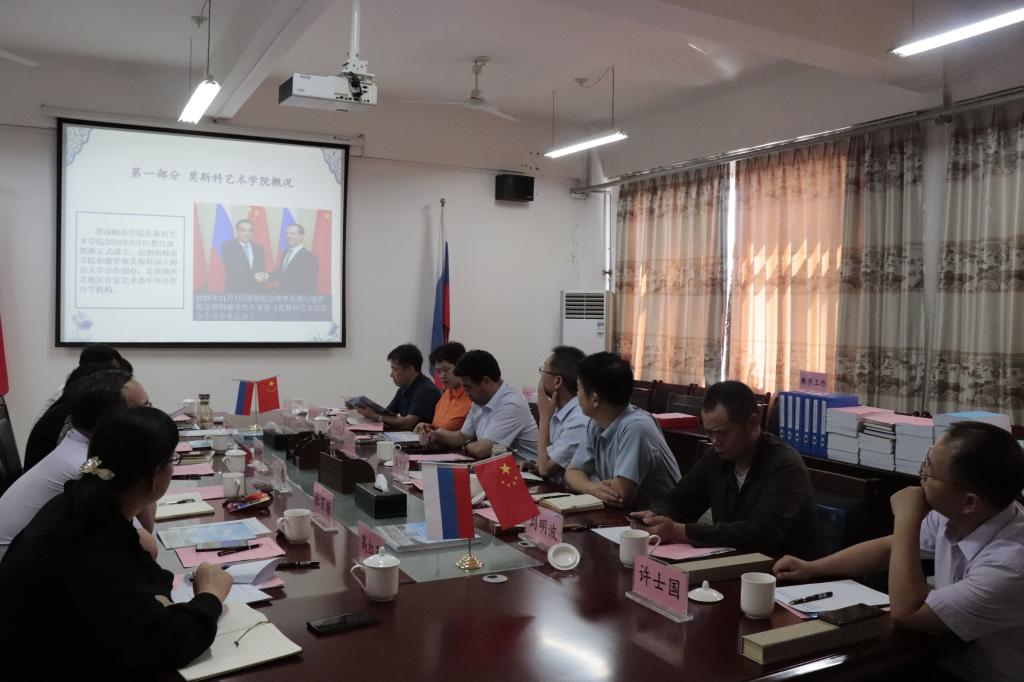 莫斯科艺术学院执行院长席景奇从党建引领、依法办学、引进资源、强化保障等方面介绍了学院办学情况,以及在人才培养、科学研究、社会服务、国际交流、文化传承与创新等方面取得的成效和凝练的特色。