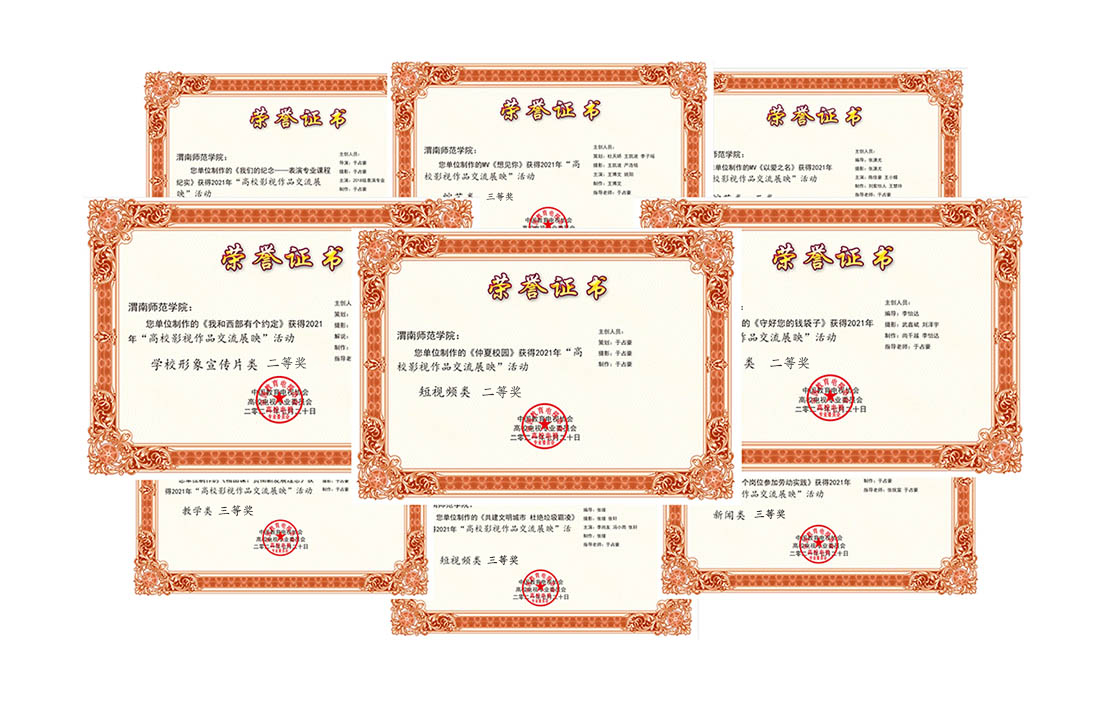 据了解,全国高校影视作品交流展映暨中国高校电视奖为全国类大学生学科竞赛。大赛从2010年启动至今,由中国教育电视台牵头,高校电视专业委员会组织实施,每年举办一次,是国内高校电视行业的最高奖项,旨在为各高校搭建在全媒体时代了解电视行业最新动态、学习先进制作理念、丰富校园文化内涵、促进校际交流学习的良好平台。活动共收到来自清华大学、北京大学、中国传媒大学等100所高校报送的1008部影视作品,其中我校获奖作品9部。