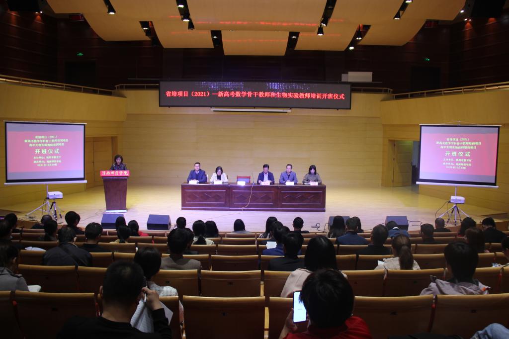 10月10日上午,由我校承办的2021年“陕西省新高考数学学科骨干教师培训项目”和“高中生物实验教师培训项目”开班仪式在逸夫楼音乐厅举行。副校长王菊霞,首席专家、数学与统计学院院长陈斌、环境与生命科学学院生物科学系系主任胡庆玲,继续教育学院周德锋参加仪式。开班仪式由继续教育学院副院长刘永勤主持。