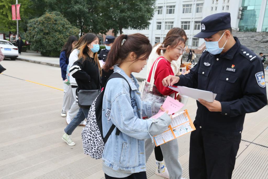 10月13日上午,学校联合渭南市公安局网监支队、渭南市临渭区公安局网监大队在厚德楼前举行了“网络安全主题日”活动。为增强宣传效果,党委网信办邀请渭南市公安局网监支队、渭南市临渭区公安局网监大队联合学校稳定办、保卫处、学生工作部等部门共同举办这次活动。党委书记卓宇、党委副书记韩小卫一行在宣传地点查看了网络安全知识宣传展板,听取了宣传周活动总体安排,并分发网络安全宣传彩页、网络法规书籍等。