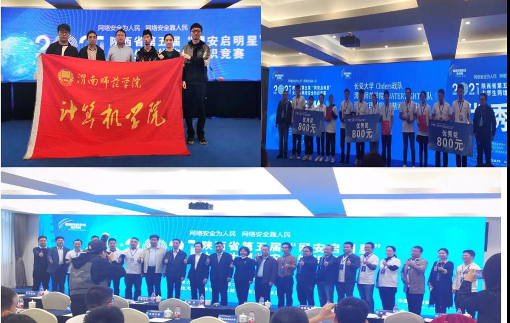 10月12日,陕西省委网信办和省教育厅联合主办的陕西省第五届“网安启明星”大学生网络安全知识竞赛总决赛在西北工业大学举行。我校信息安全战队获陕西省第五届“网安启明星”大学生网络安全知识竞赛总决赛优秀奖。