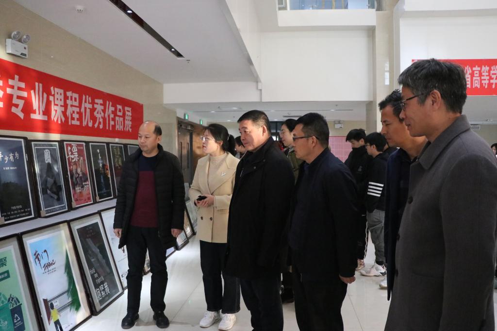 在首期秋季学期课程作品展厅,卓宇逐一观看了学生们创作的纪录片、剧情短片、素描、色彩、服装设计、舞台模型、角色设计等作品,认真听取了传媒学院各专业教师课程思政教学心得和学生创作体悟。