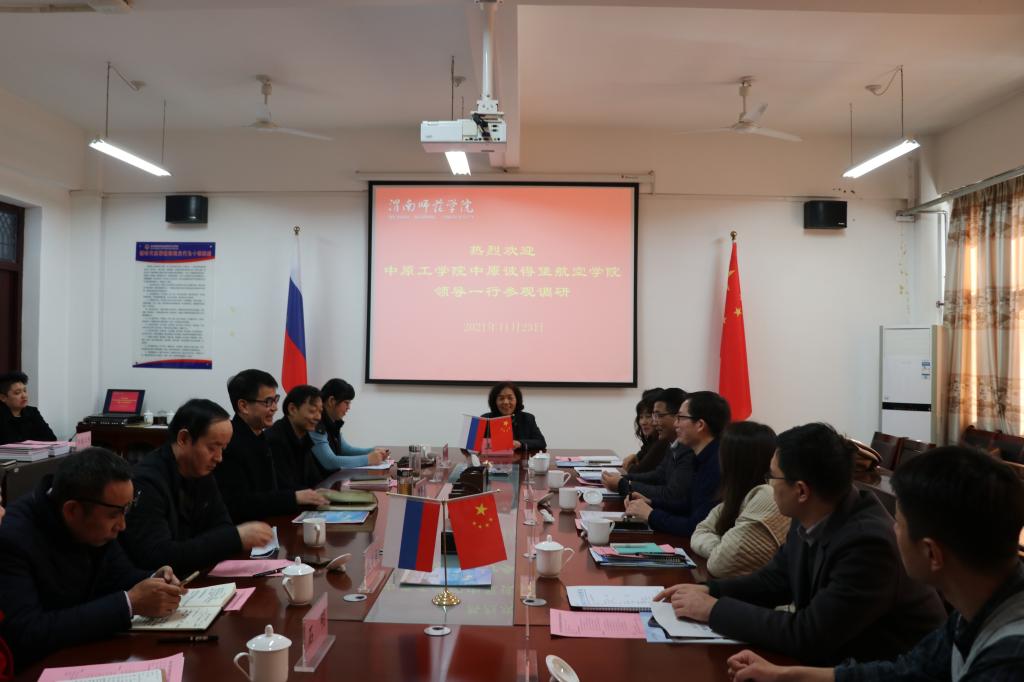 11月23日上午,中原工学院中原彼得堡航空学院院长温盛军一行七人莅临我校莫斯科艺术学院考察交流,副校长王菊霞会见温盛军一行。