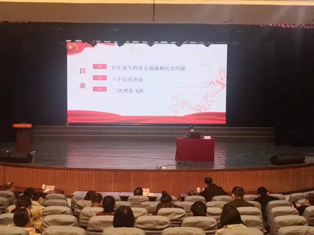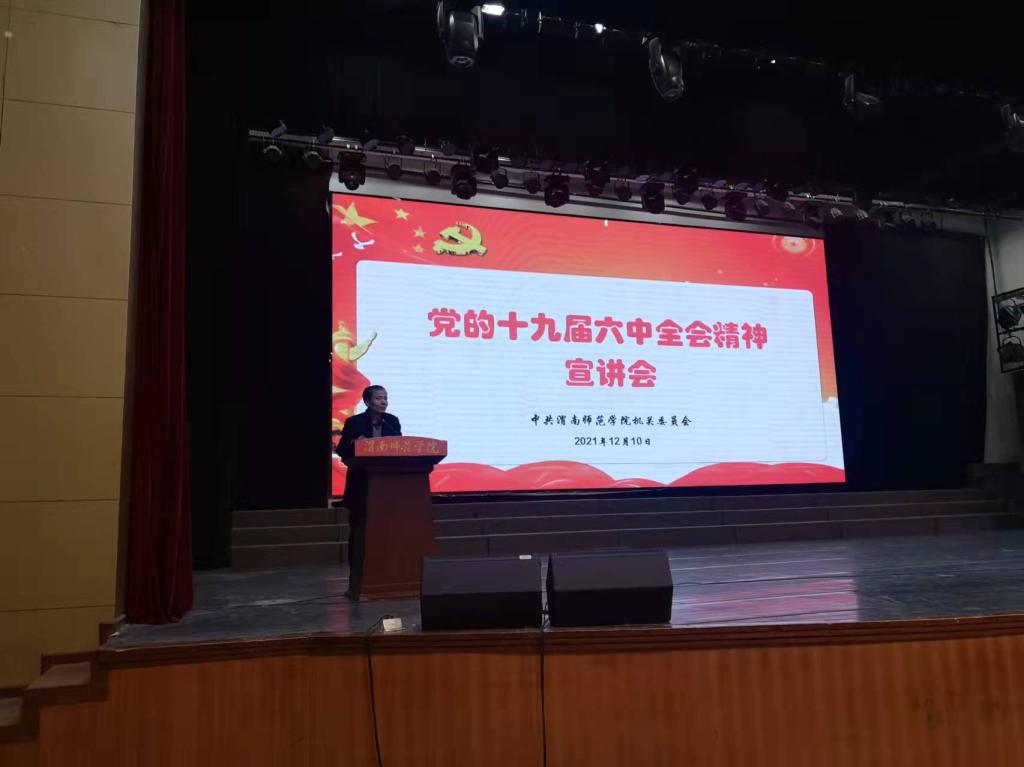 会上,我校党的十九届六中全会精神宣讲团成员、马克思主义学院教授卢粉艳,为与会人员作题为《三个历史决议 三次理论飞跃》全会精神学习辅导报告。报告从党的百年奋斗重大成就和历史经验、三个历史决议、三次理论飞跃等三方面,对全会精神进行了深刻阐释。