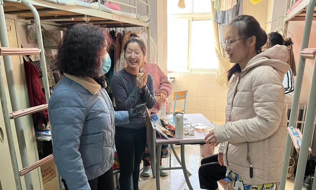 王菊霞从一楼一路走访至六楼,走进学生中间,与学生们亲切交流,详细询问学生们在宿舍里的日常卫生防疫、宿舍供暖、热水供应与使用、公共自助洗衣室的消杀等生活保障情况,了解学生们在封闭管理期间思想情绪状况及学习计划调整和线上学习的准备与适应等情况。她感谢同学们对学校疫情防控工作的支持与配合,叮嘱大家关注身体健康,保持良好心态,合理搭配饮食,坚持劳逸结合,多与家人沟通。她同时强调,即将开始线上教学,同学们要按时作息、认真上课,有困难及时向辅导员、任课教师等反馈,充分利用时间,在学业上取得新的收获。