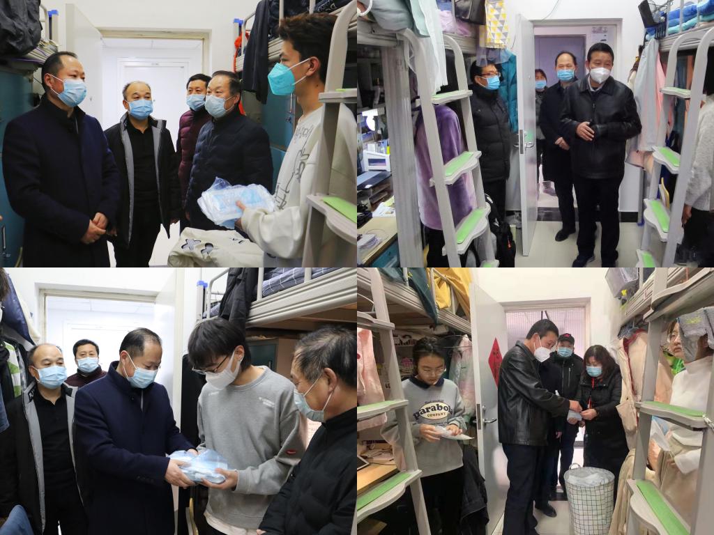 随后,检查组一行人来到学生宿舍,走访并慰问学生。肖耀刚和汪勇亲切地与学生交流疫情期间宿舍学习和生活的情况,对同学们充分理解、自觉遵守学校疫情防控相关规定表示肯定,并代表学校送上疫情防控物资爱心包。卢爱刚、凌朝栋分别叮嘱同学们要充分认识当前疫情防控形势的严峻性和复杂性,遵守学校疫情防控的各项管理规定,做好个人防护,及时和家人报平安,让父母都放心,鼓励同学们团结起来,为了疫情散去、早日解封一起努力!