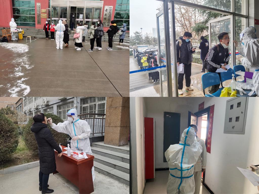 按照学校新冠疫情防控领导小组对医院的工作要求,在保障日常诊疗工作的同时,医院须全面配合完成学校重点人群的核酸采集检测工作。12月17日,根据疫情形势及政府部门要求,附属医院组织配合多家校外医疗机构率先在朝阳校区开展全员核酸检测。自此,拉开学校师生核酸检测的帷幕。截至1月10日,附属医院组织并配合临渭区妇幼保健院、渭南市第二医院、临渭区疾控中心、富平县妇女儿童医院等医疗机构分别在朝阳、富平校区对后勤服务中心、保卫处、资产经营公司及有西安旅居史师生等重点人员统筹安排进行核酸抽样检查累计检测4万余人次,选派医护骨干参加核酸检测业务培训2次,配备核酸采样专用扫码仪器2台,并组织召开了多次核酸采集工作交流会。