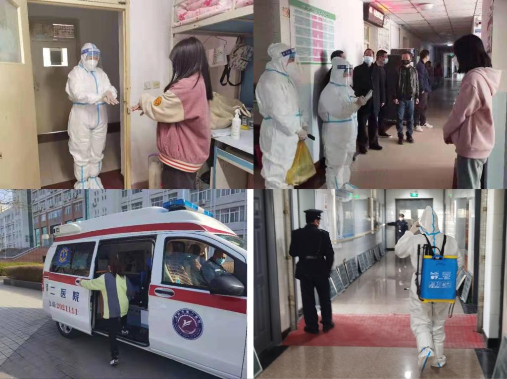 此次演练严格按照疫情防控相关规定和流程进行,在完善应急演练脚本、分场景反复模拟练习、充分准备演练物资及车辆的条件下,重点对学生在教室和宿舍中出现身体发热及新冠相关症状等情况的应急处置流程进行了模拟演练。演练共设两个场景,主要模拟:教室、宿舍突发学生体温异常两个突发场景,任课教师、辅导员、医护人员和安保人员、消杀人员等的应急处置。演练内容包括信息上报、隔离点启用、区域封锁、环境消杀、定点医院转诊、信息反馈等。整个演练过程紧张有序,各个环节密切配合,有效锻炼了师生应对疫情的快速反应能力,检验了各疫情防控小组防疫工作的应急指挥和组织协调能力。